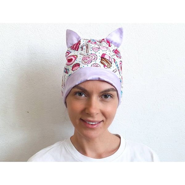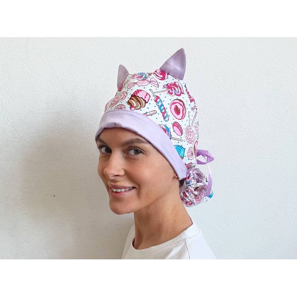 Cat Ears Scrub Cap Ponytail Sewing Pattern With Video Print Inspire Uplift
